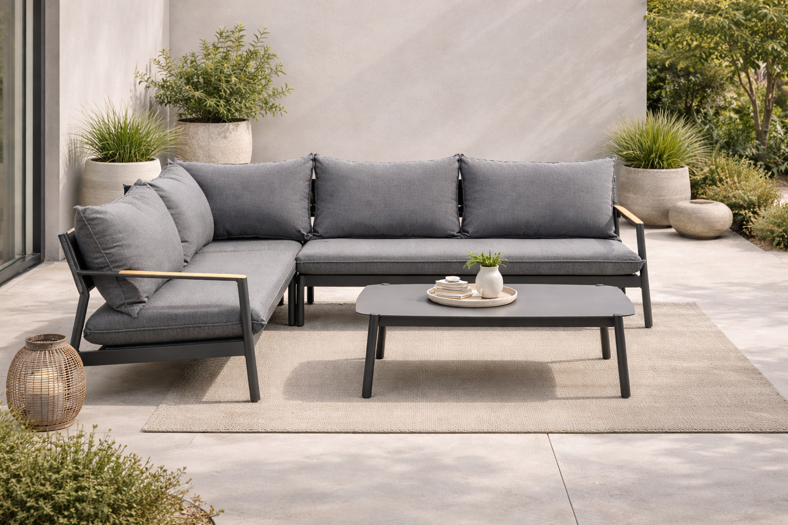 "This outdoor sectional sofa set takes a bit of time to slap together but it is well worth it. The red fabric is really vibrant and the cushions are firm and supportive; extremely comfortable."