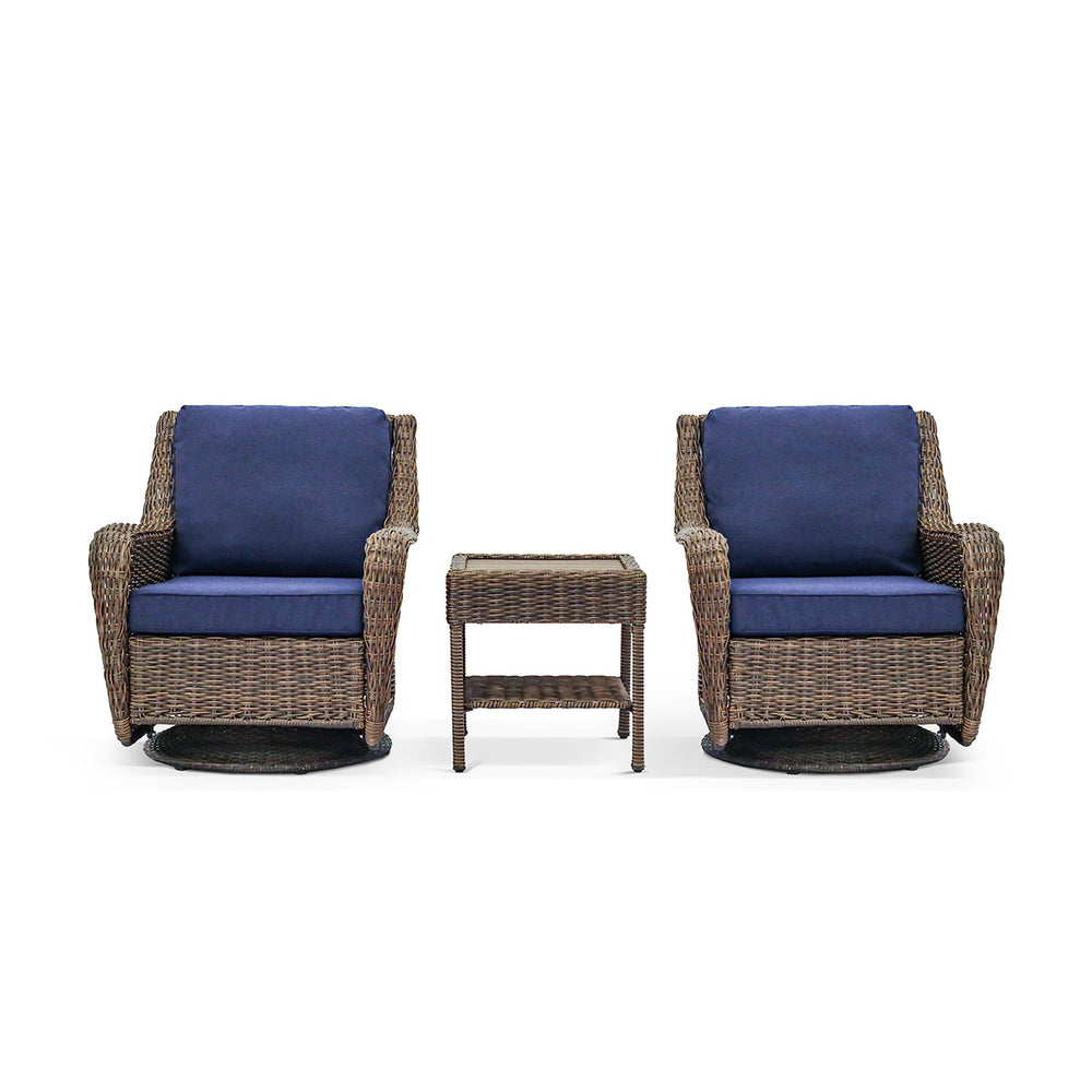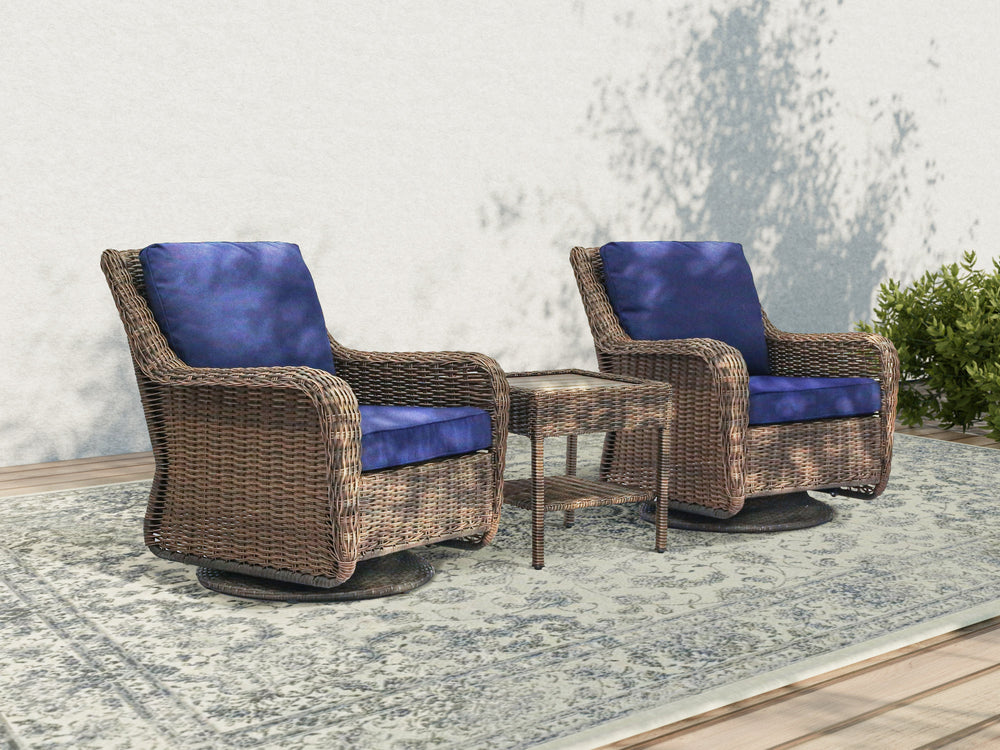 The Cambridge Swivel Chair Bistro Set is a charming and compact addition to any outdoor space. Featuring two comfortable chairs and a matching end table, this set is perfect for morning coffee, casual conversations, or simply enjoying the fresh air. Whether placed on a patio, balcony, or garden nook, this set creates an inviting spot for relaxation.