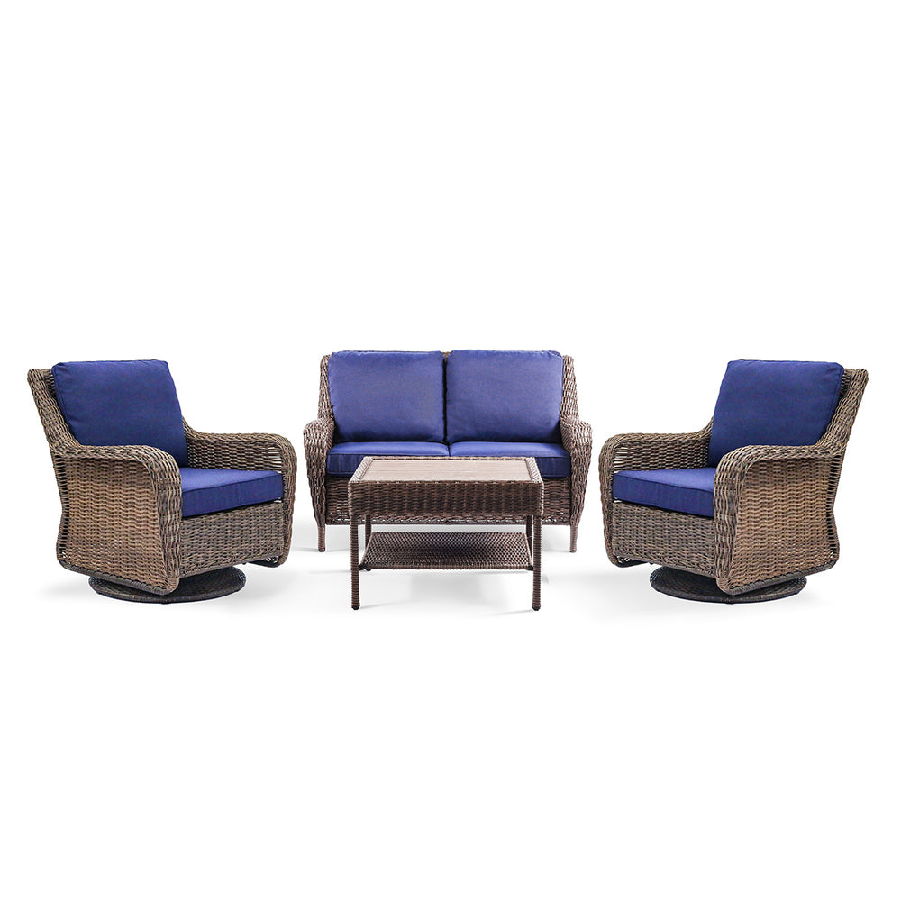 Our Cambridge Loveseat Conversational, this time with our 360° swivel glider chairs. Instantly transform your yard into an inviting gathering space, perfect for sunny days and starry nights alike. Indulgently designed seats guarantee comfort, while quality materials are made to withstand the seasons, so you can enjoy your furniture for years to come.