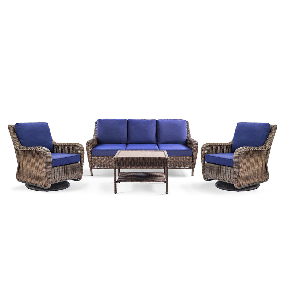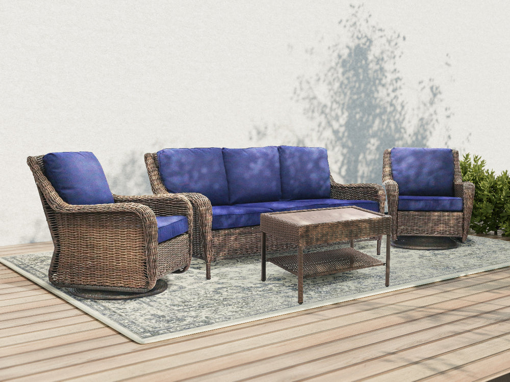 Our Cambridge Sofa Conversational, this time with our 360° swivel glider chairs. Instantly transform your yard into an inviting gathering space, perfect for sunny days and starry nights alike. Indulgently designed seats guarantee comfort, while quality materials are made to withstand the seasons, so you can enjoy your furniture for years to come.