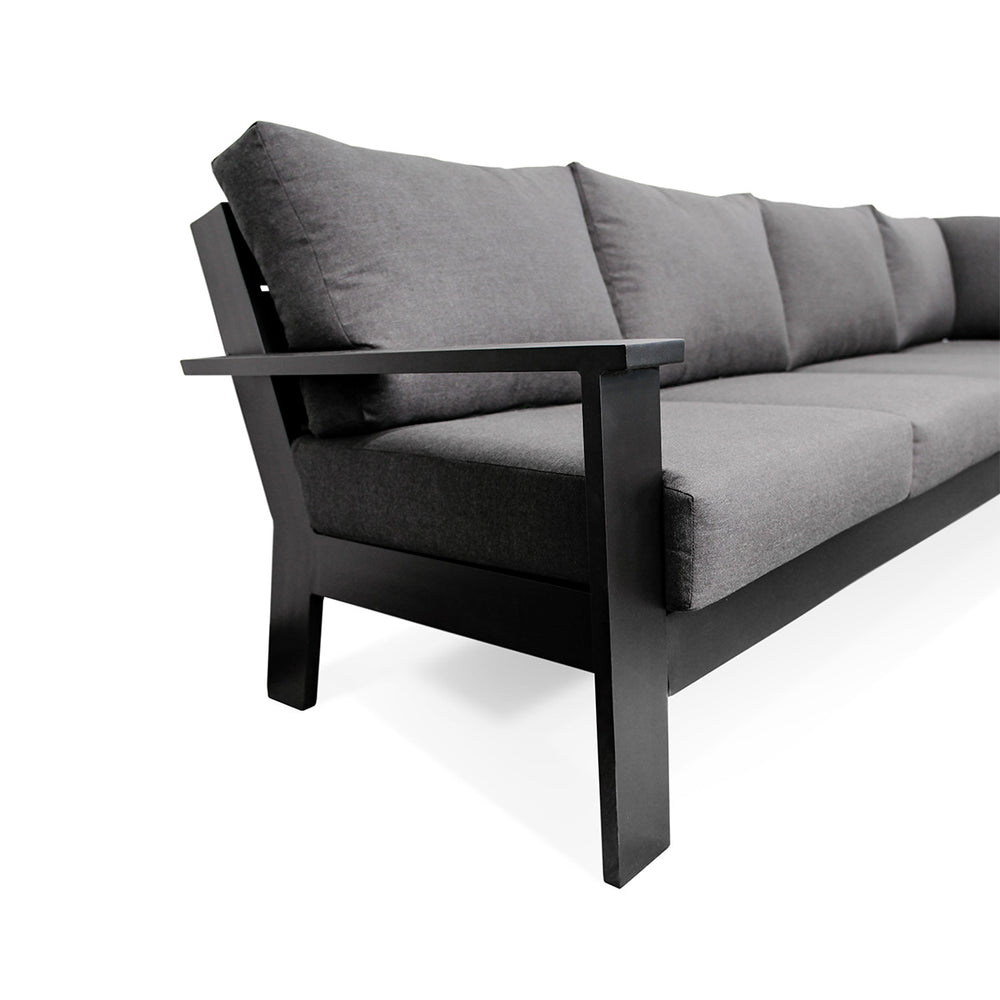 New to the collection, our Magnolia Sectional is a sleek, modular centrepiece that can be configured as you like. The generous seating space makes for the perfect gathering spot to lounge. Powder coated aluminum frames are lightweight yet hardy enough to withstand the elements, and removable Sunbrella® cushions make upkeep simple.